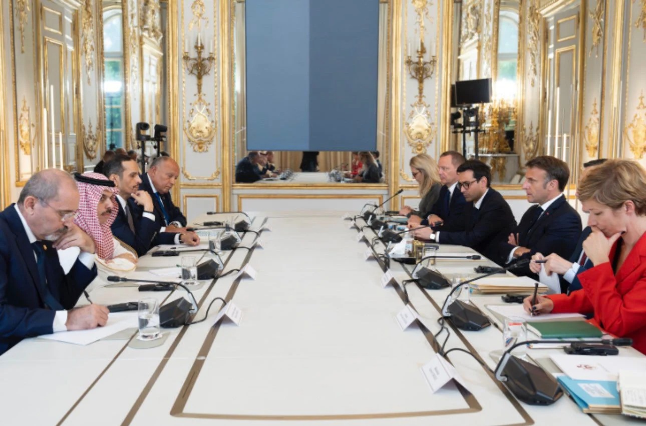 التقى وزير الخارجية سامح شكرى ووزراء خارجية قطر والأردن والسعودية مع الرئيس الفرنسي إيمانويل ماكرون، لبحث التحركات الكفيلة بوقف الحرب الإسرائيلية ضد غزة، ونفاذ المساعدات بشكل كامل ودون عوائق، وسبل الدفع بالمسار السياسى ودعم تنفيذ حل الدولتين، بحسب ما أكده المتحدث الرسمي باسم وزارة الخارجية السفير أحمد أبو زيد عبر منصة "إكس".
