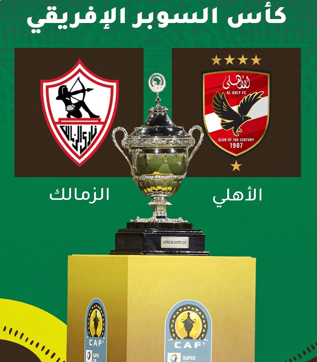 يلتقي الأهلي والزمالك بطلي دوري أبطال إفريقيا والكونفدرالية، في نهائي كأس السوبر الإفريقي في مباراة درامية يشهد عليها الجمهور المصري.