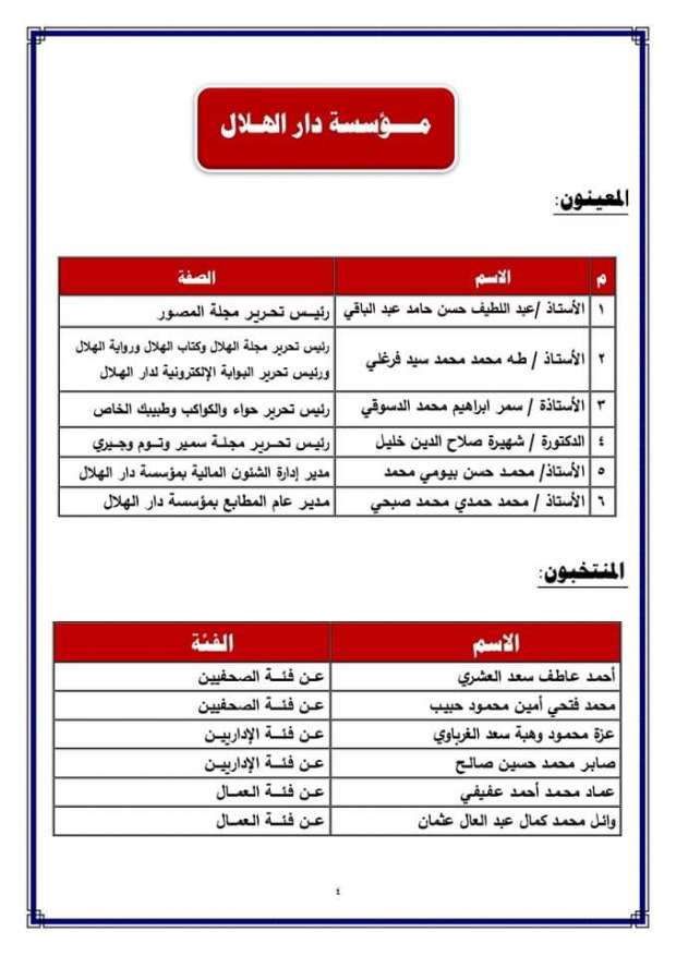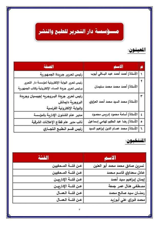 واعتمدت الهيئة التشكيلات النهائية لمجالس إدارات المؤسسات الصحفية والتي جاءت كما يأتي :