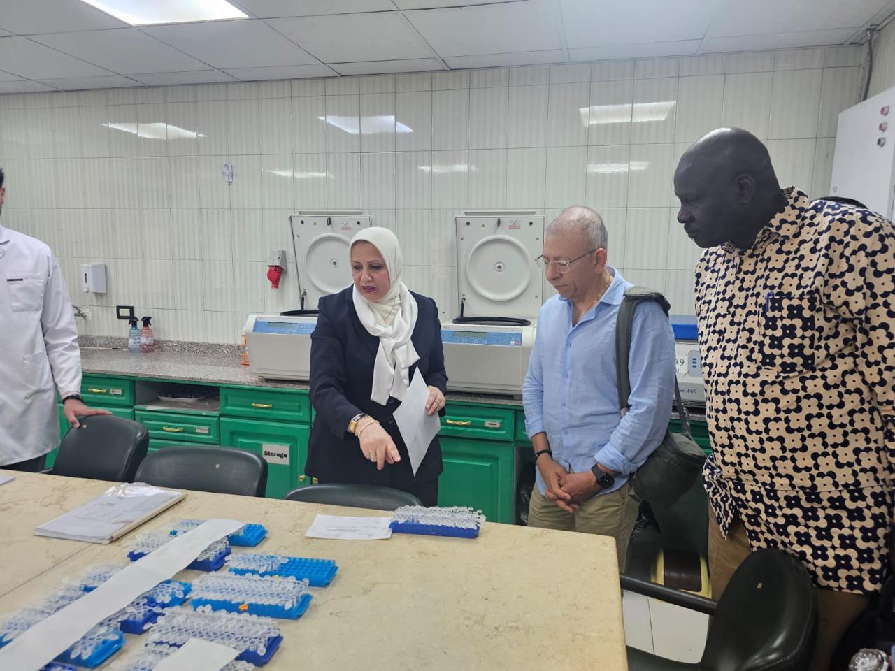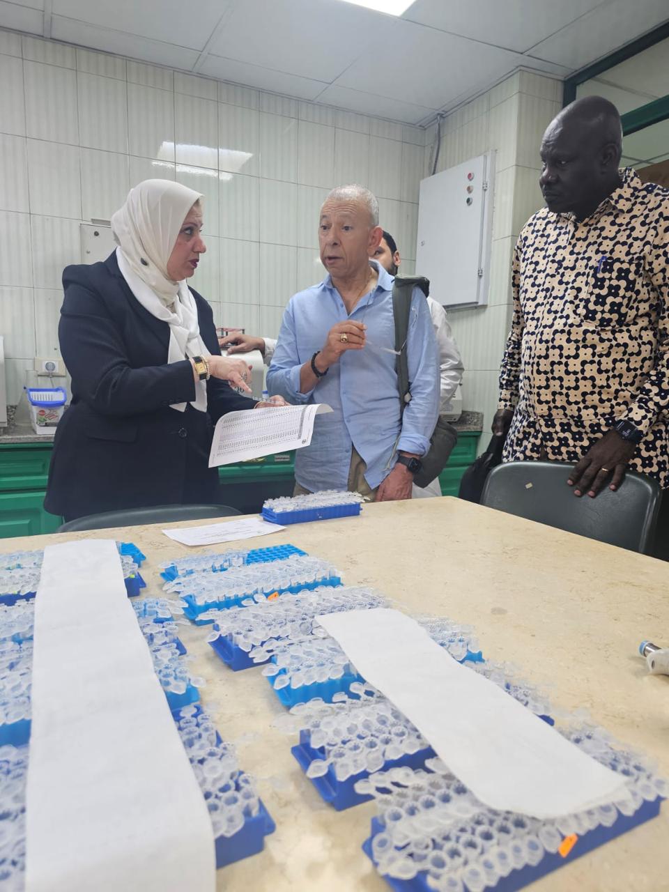 د أسامة الليثى سكرتير عام الاتفاقية وحضور السيد / اروب دنج رئيس قسم الاتصالات والسيدة / انيتا تبا ساج إستشارية التواصل بالاتفاقية الدولية لوقاية النباتات بزيارة معامل مشروع حصر ومكافحة مرض العفن البنى فى البطاطس.