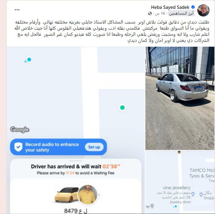 وقالت صاحبة الواقعة عبر السوشيال ميديا ،" طلبت ديدي من دقايق قولت بلاش اوبر بسبب المشاكل الاستاذ جايلي بعربيه مختلفه نهائي وأرقام مختلفه ويقولي ما أنا السواق طبعا مركبتش فكلمني بقله ادب ويقولي هتدفعيلي الفلوس كلها أنا جيت خلاص الله اعلم شارب ولا ايه ومشيت ورفض يلغي الرحله وطبعا انا صورت كله فيديو كمان غير الصور فالحل ايه مع الشركات دي يعني لا اوبر امان ولا كمان ديدي".