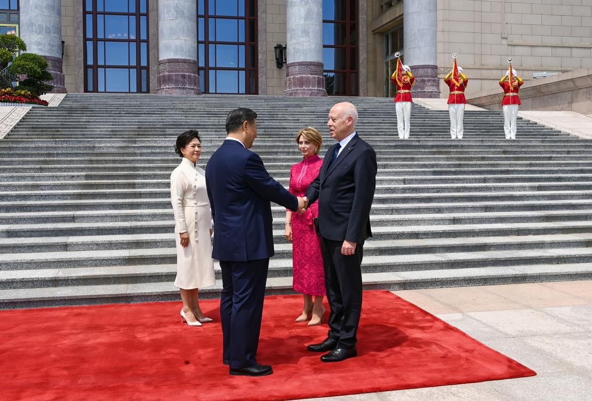جرت، اليوم الجمعة ببيكين، مراسم استقبال رسمية على شرف رئيس جمهورية تونس قيس سعيّد وحرمه بمناسبة زيارة الدولة التي يؤديها إلى جمهورية الصين الشعبية.