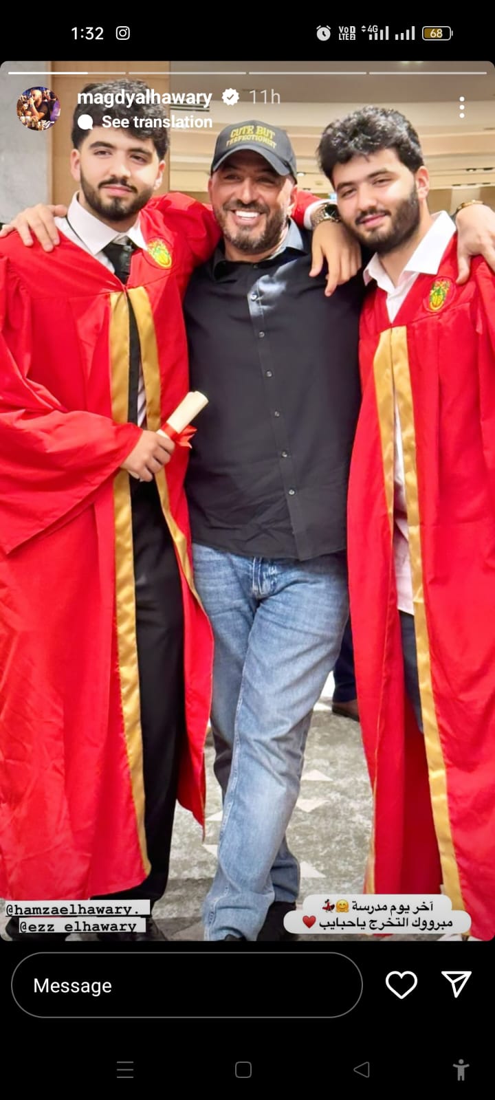 شارك المخرج مجدي الهواري جمهوره ومتابعينه ببعض الصور عبر خاصية القصص المصورة على انستجرام ، احتفالا بنجاح وتخرج أولاده حمزة و عز ، وعلق الصور بقوله “آخر يوم مدرسة مبروك التخرج يا حبايب”.