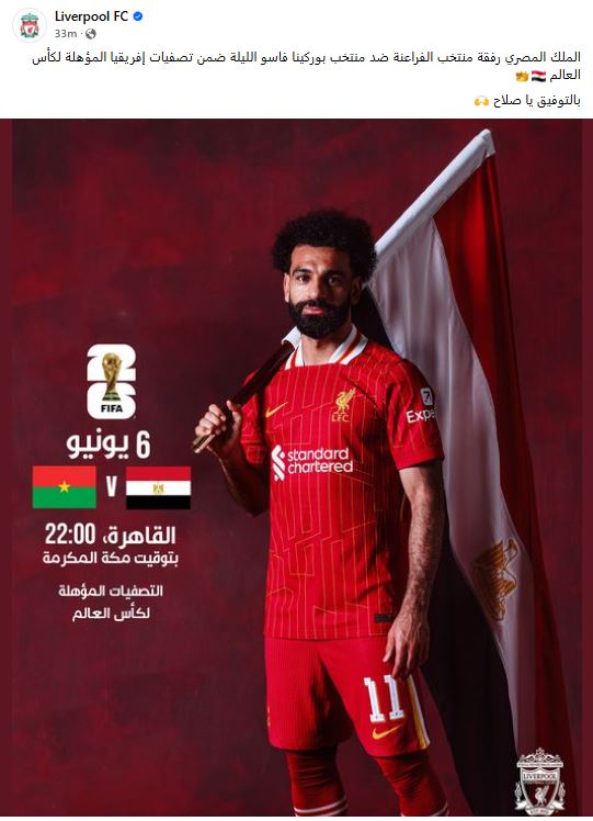 وجه نادي ليفربول الإنجليزي رسالة دعم للاعب المصري المحترف في ناديه قبيل مواجهة اليوم بين منتخب مصر ومنتخب بوركينا فاسو