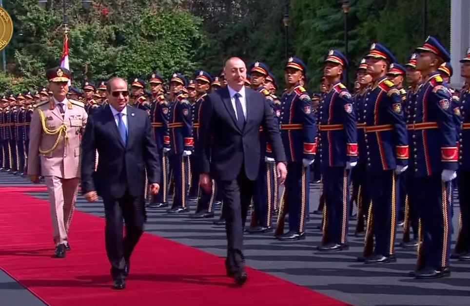 واستعرض الرئيس عبد الفتاح السيسي، منذ قليل، ونظيره الرئيس الأذربيجاني إلهام علييف، حرس الشرف.