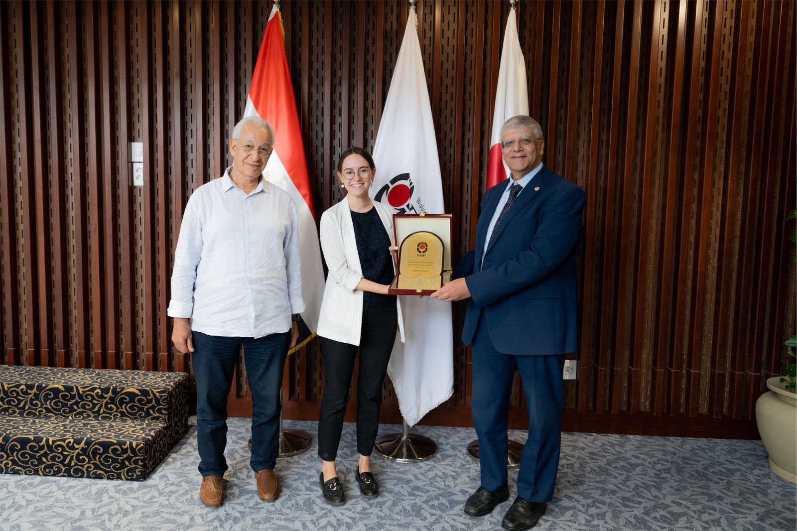 و كان فى استقبالهم الدكتور هاني هلال، رئيس مجلس الأمناء ووزير التعليم العالي والبحث العلمى الاسبق؛ و الدكتور عمرو عدلي، رئيس الجامعة المصرية اليابانيةو الدكتور هاشيموتو شوجي، النائب الأول للشؤون الإقليمية والدولية و الدكتورسامح ندا، نائب رئيس الجامعة للشئون الأكاديمية والتعليم ، وبحضور لفيف من عمداء الكليات بالجامعة حيث تم بحث سبل تعزيز التعاون بين الجامعة المصرية اليابانية للعلوم والتكنولوجيا والهيئة الألمانية للتبادل العلمي. (DAAD).