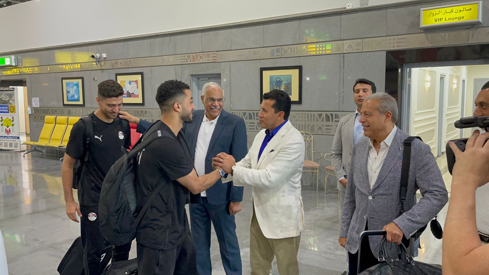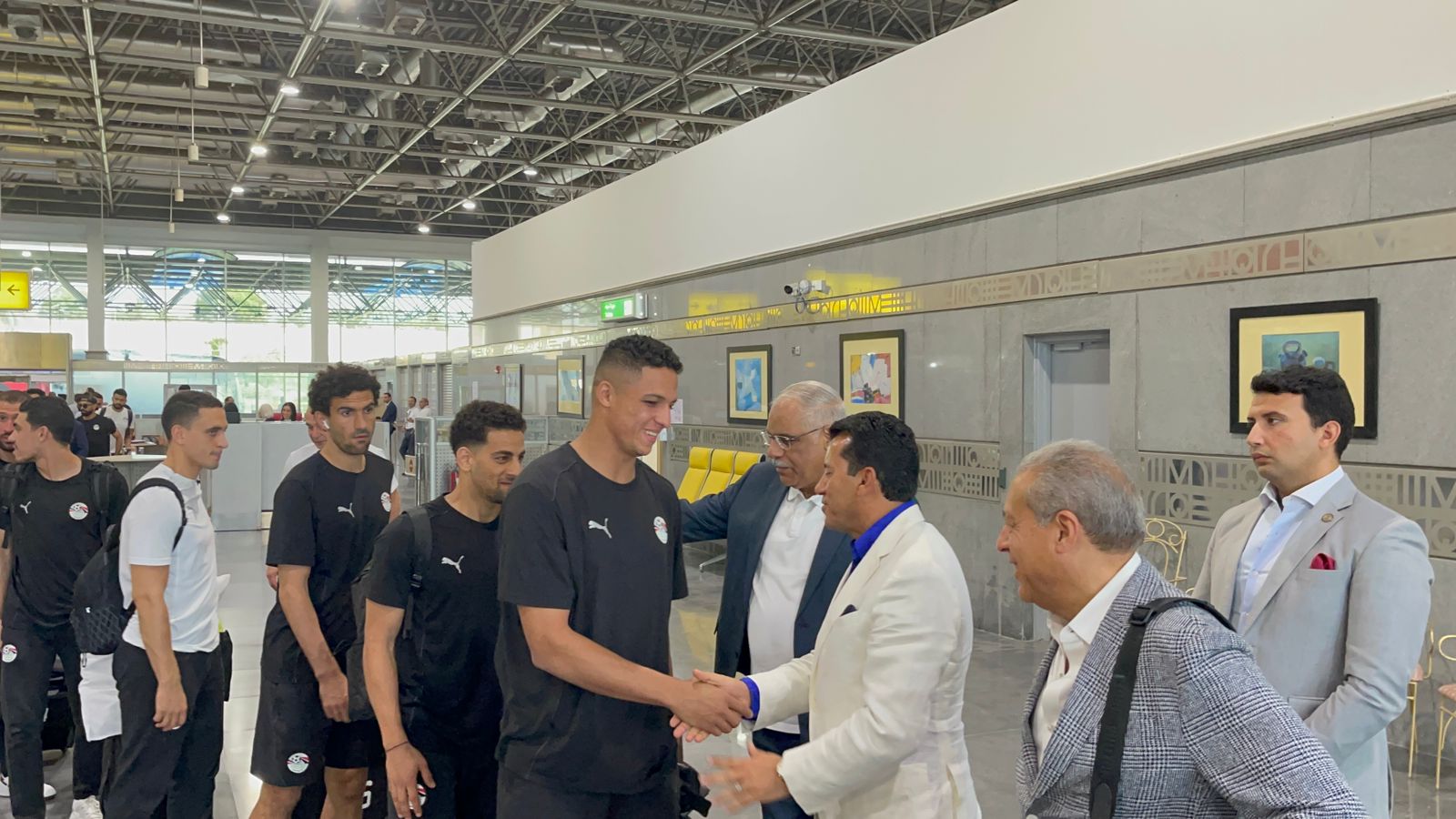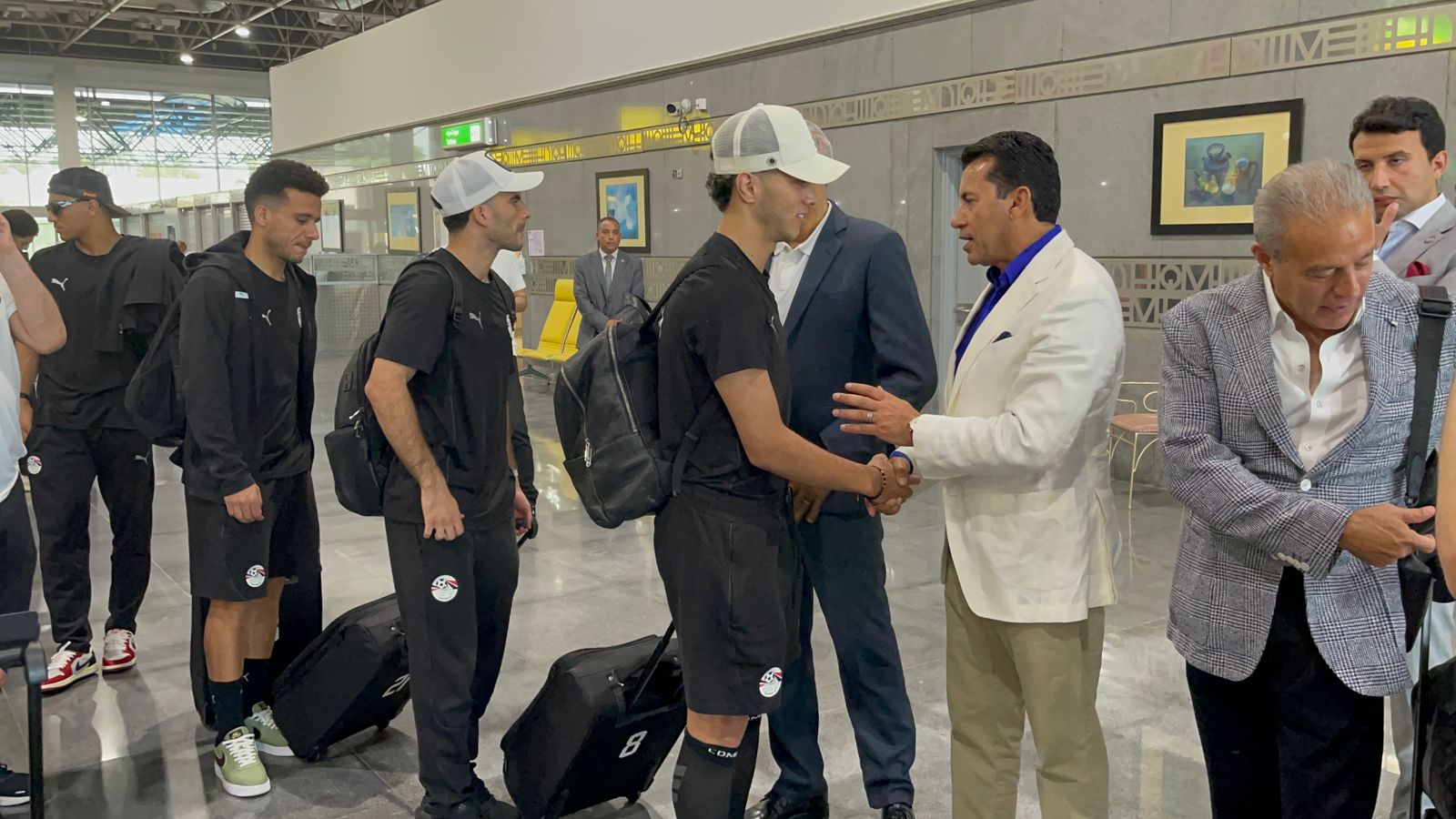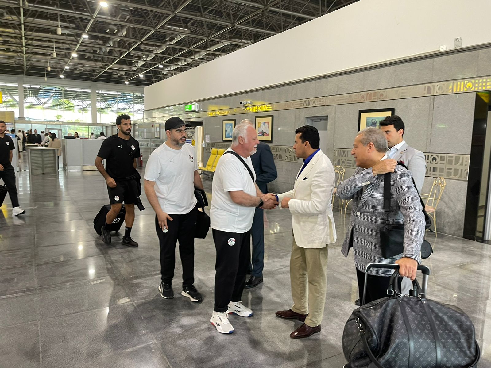 وزير الرياضة يؤازر بعثة منتخب مصر قبل مواجهة غينيا بيساو (صور)