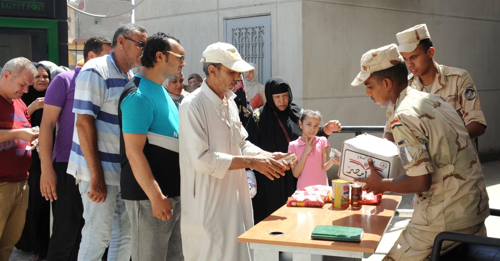 القوات المسلحة توزع كميات كبيرة من الحصص الغذائية بنصف الثمن (فيديو وصور)