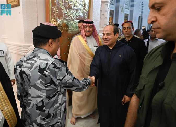 وكان في استقبال الرئيس عبدالفتاح السيسي لدى وصوله المسجد النبوي، المشرف العام على الأعمال في المسجد النبوي الدكتور نبيل اللحيدان، وقائد قوة أمن المسجد النبوي العقيد متعب بن نعيمان البدراني، ومدير مكتب المراسم الملكية بالمدينة المنورة إبراهيم بن عبدالله برّي، وعدد من المسؤولين، بحسب وكالة الأنباء السعودية (واس).