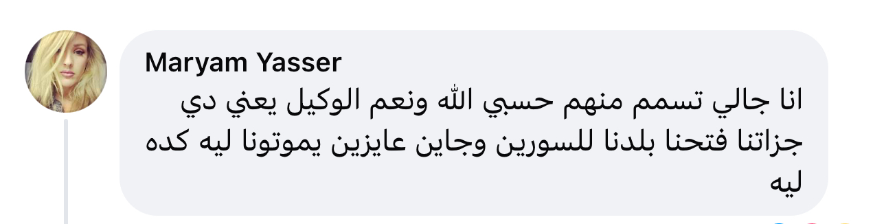 وقال آخر،" انا جالي تسمم منهم حسبي الله ونعم الوكيل يعني دي جزاتنا فتحنا بلدنا للسورين وجاين عايزين يموتونا ليه كده ليه".