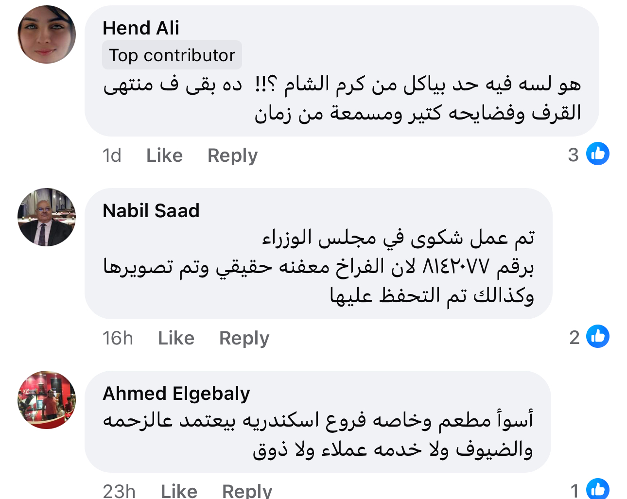حالة تسمم وفراخ فاسدة.. شكوى لمجلس الوزراء ووزارة الصحة ضد مطعم كرم الشام السورى