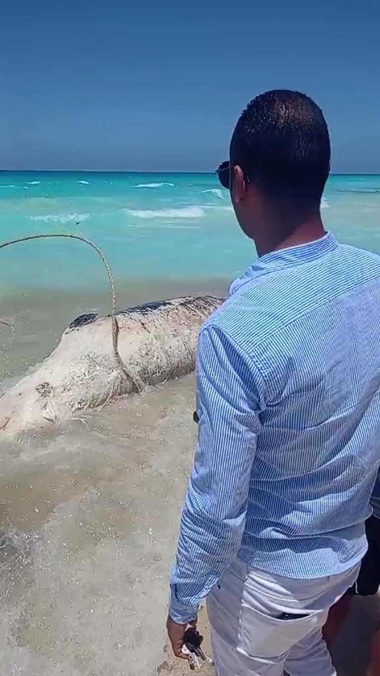 وورد بلاغ للإدارة العامة لمحميات المنطقة الشمالية بوزارة البيئة بالعثور على حيوان بحرى نافق بأحد شواطىء الساحل الشمالى ، قرية هاسيندا وايت سيدي عبد الرحمن.
