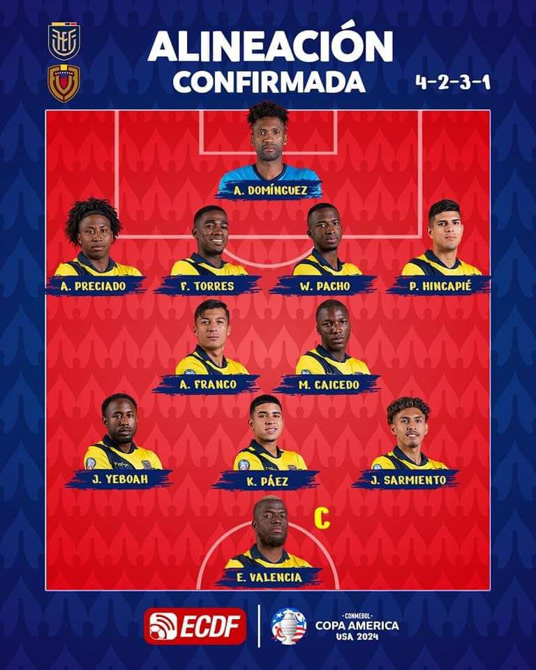 وكان فليكس سانشيز باس، المدير الفني لمنتخب الإكوادور، أعلن تشكيل فريقه لمواجهة نظيره فنزويلا.