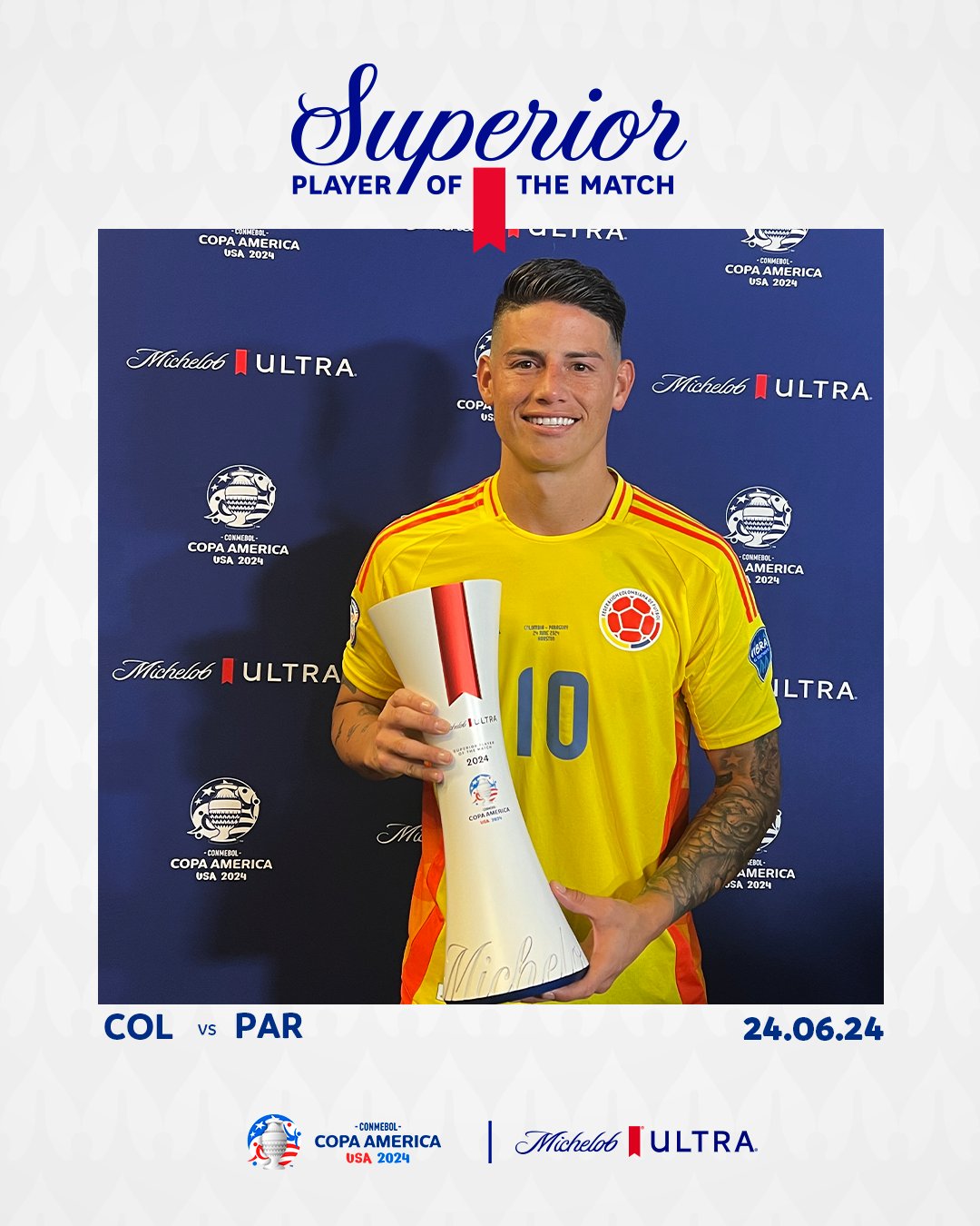 وحصل جيمس رودريجيز قائد منتخب كولومبيا على جائزة افضل لاعب في المباراة التي أقيمت على ملعب إن آر جاي بالولايات المتحدة الأمريكية.