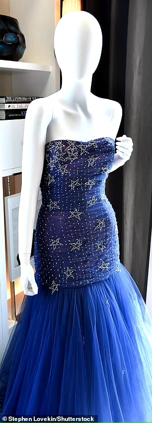 من بين أكثر قطع ديانا الخالدة المعروضة للبيع والتي عززت مكانتها كأيقونة ثقافية، فستانها من التول الأزرق الداكن من تصميم موراي أربيد، والمزين بنجوم متلألئة من الألماس. ومن المتوقع أن يتم بيع الفستان بمبلغ 200 ألف دولار.