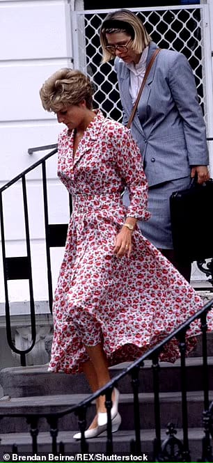 كما تم تصويرها وهي ترتدي الفستان الزهري الوردي في 22 أغسطس 1991 أثناء مغادرتها مستشفى سانت ماري في لندن بعد جلوسها مع مرضى الإيدز، وفي عام 1992 وهي تغادر مدرسة الأمير هاري في نوتنج هيل.