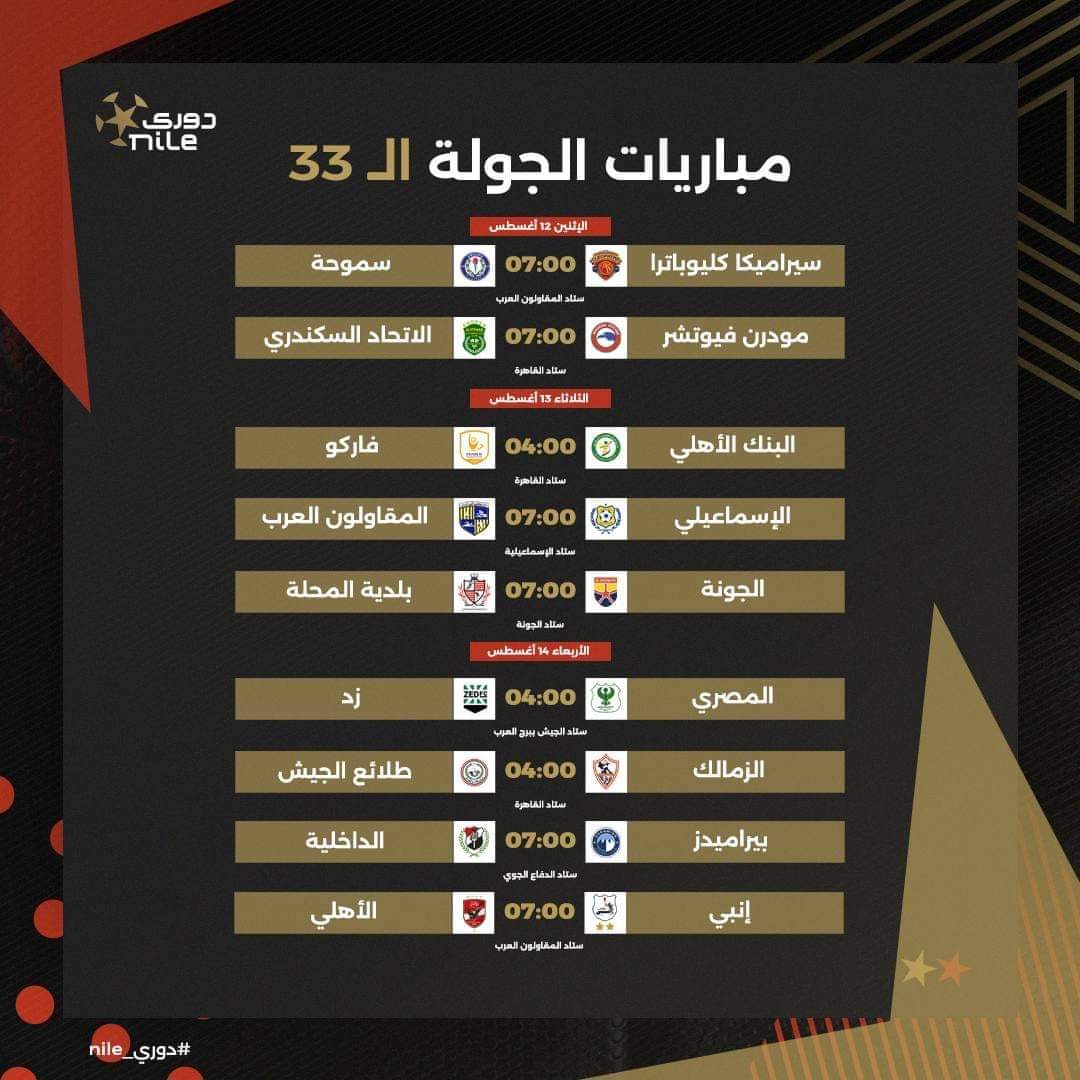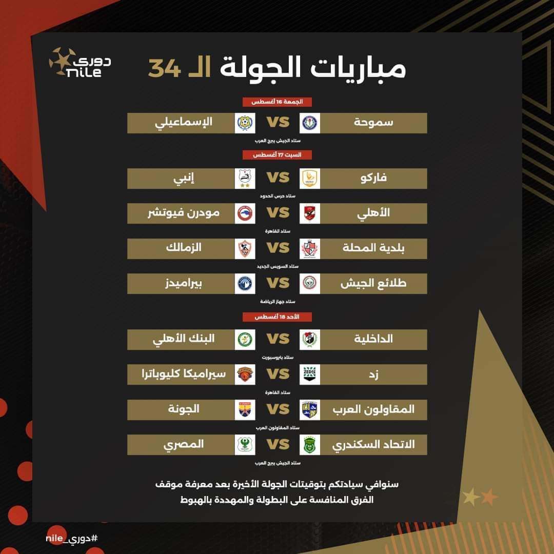 وجاء موعد مباريات المؤجلة من الدوري المصري كالتالي:
