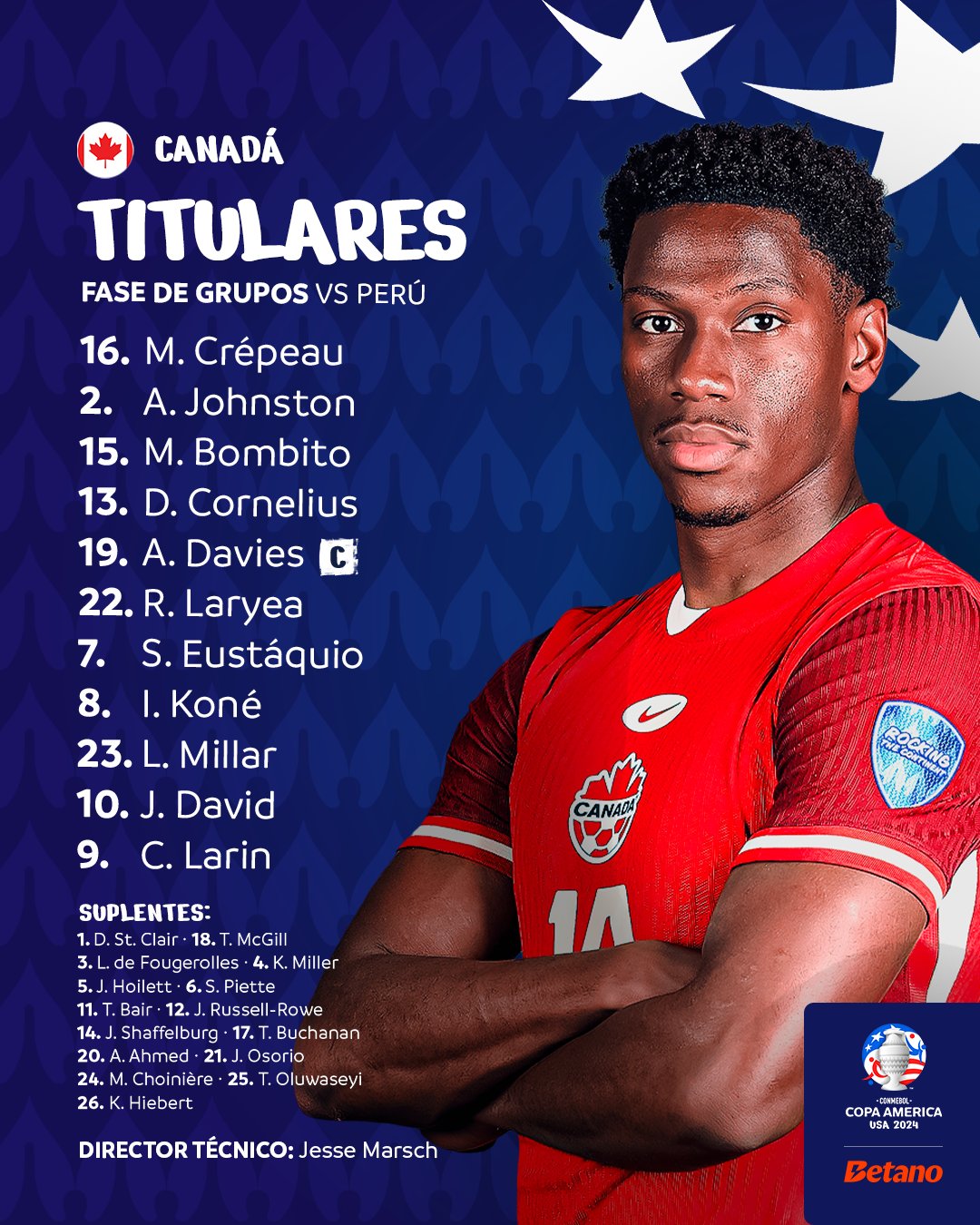 فاز منتخب كندا على منتخب بيرو في المباراة التي اقيمت بينهما علي ملعب "شيلدرن بارك" بكانساس سيتي، ضمن منافسات الجولة الثانية من دور المجموعات ببطولة كوبا امريكا 2024، بهدف نظيف حرزه جوناثان ديفيد في الدقيقة 74 من عمر المباراة.