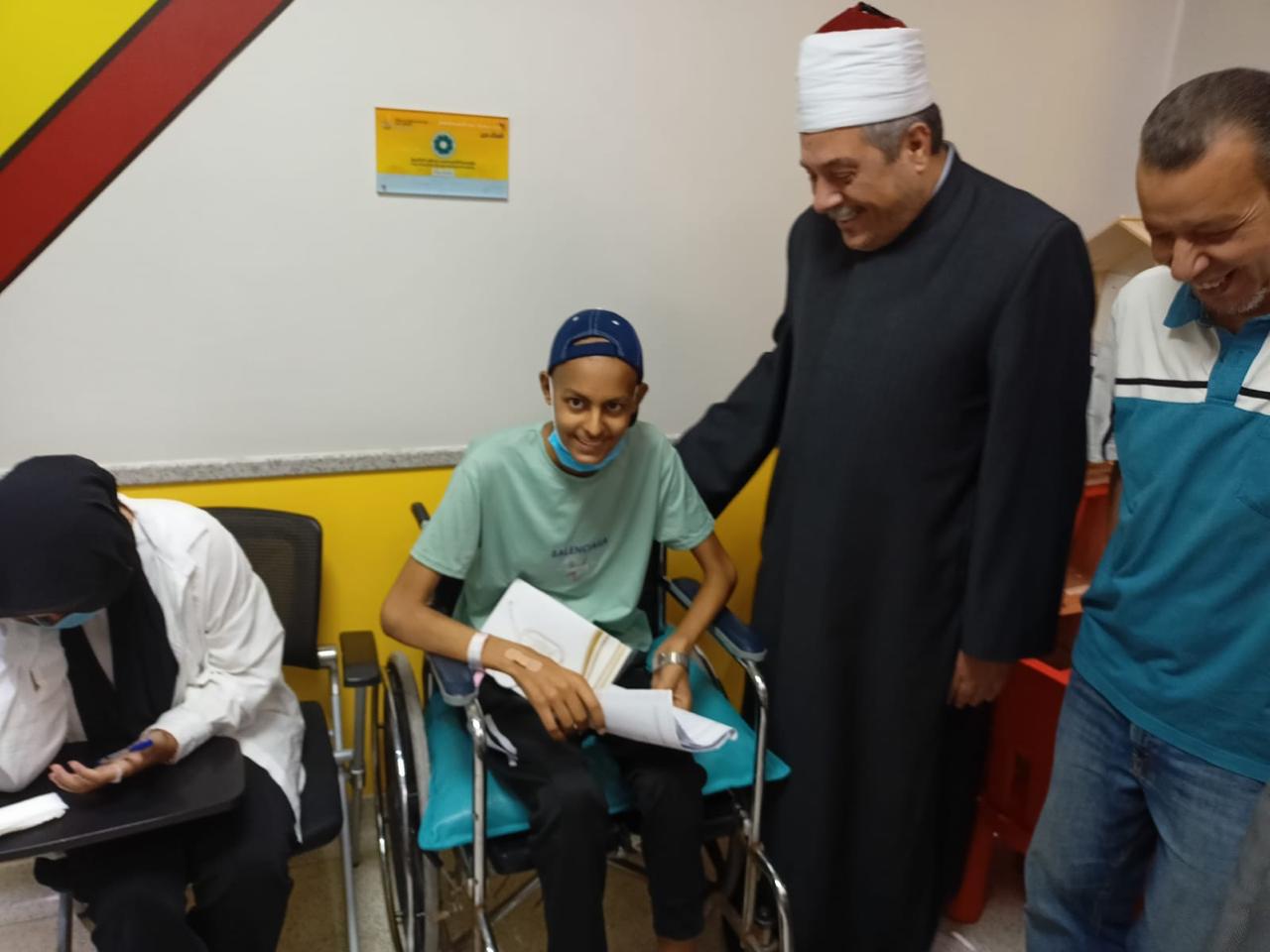 وخلال الزيارة، وجه رئيس قطاع المعاهد الأزهرية، اللجنة المنعقدة بمستشفى 57357، باستثناء طالبا من القسم الأدبي من امتحاني اللغتين الإنجليزية والفرنسية تحريريا والاكتفاء بامتحانه شفهيا في ضوء الضوابط المعتمدة في هذا الشأن، مراعاة لعدم قدرته على الكتابة.