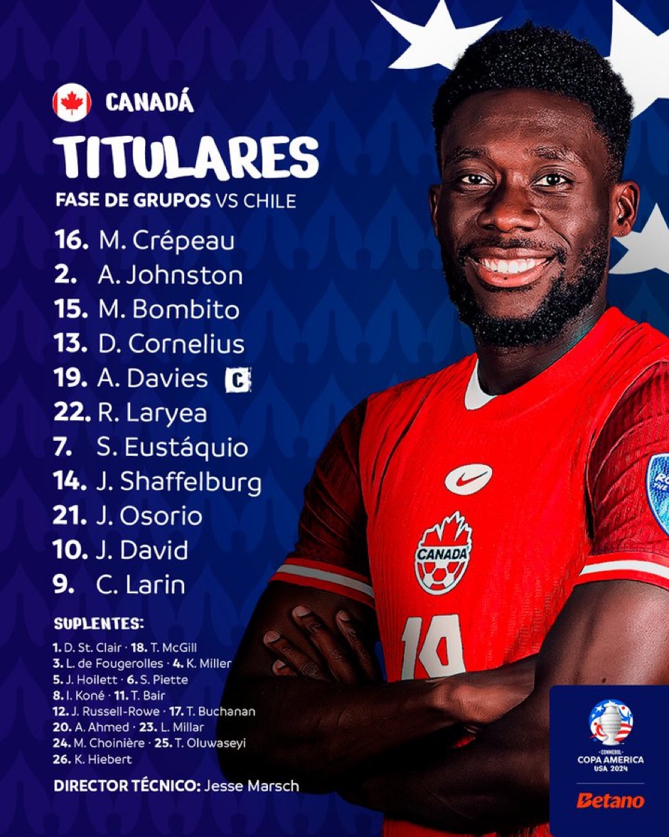 فيما جاء منتخب كندا ضد تشيلي كالتالي: