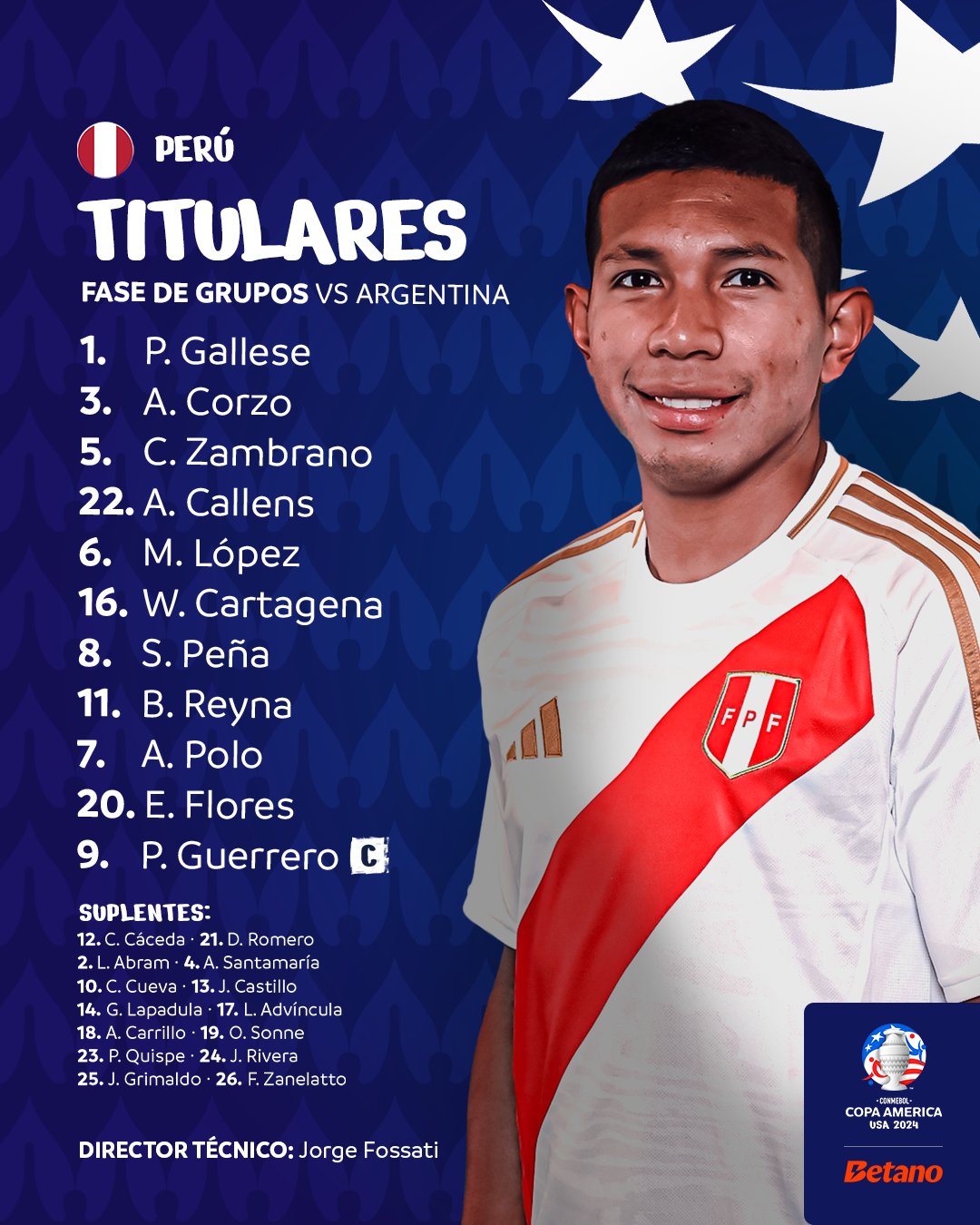 فيما جاء تشكيل منتخب بيرو ضد الارجنتين كالتالي: