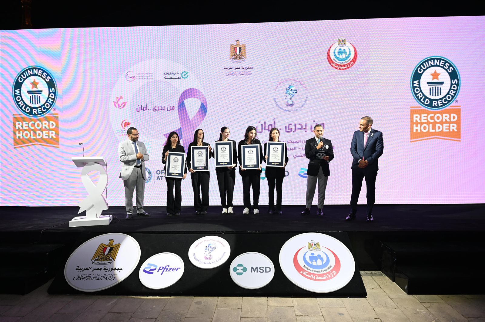 و أقيمت الاحتفالية بقلعة صلاح الدين بحضور المستشار عدلي حسين محافظ القليوبية السابق والدكتور محمد حساني مساعد وزير الصحة لشئون المشروعات ومبادرات الصحة العامة، والدكتور محمد العزب رئيس الجمعية المصرية لمنظار عنق الرحم، والسيد الوليد عثمان ممثل موسوعة جينيس للأرقام القياسية، ولفيف من أعضاء مجلسي النواب والشيوخ والشخصيات العامة.