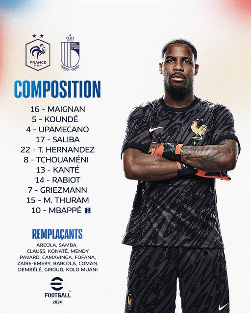 تشكيل فرنسا أمام بلجيكا في يورو 2024.