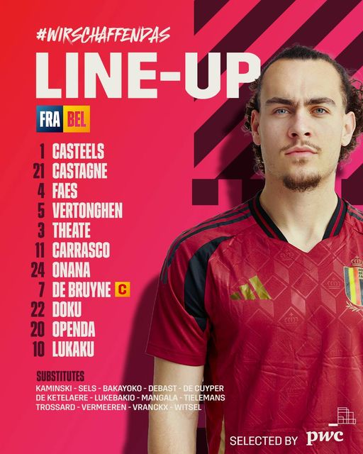 تشكيل بلجيكا أمام فرنسا في يورو 2024.