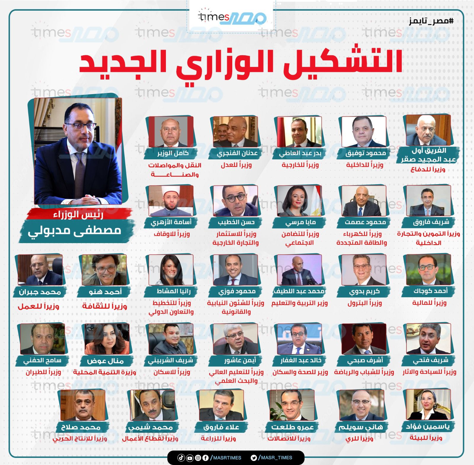 وتضمن التشكيل الوزاري الجديد، الذي اختاره الدكتور مصطفى مدبولي رئيس مجلس الوزراء، بتكليف من الرئيس السيسي، العديد من الكوادر والشخصيات الوطنية من ذوي الخبرات الدولية.