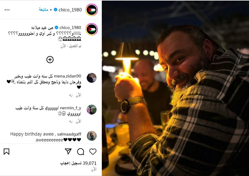وتفاعل معه عددا من نجوم الفن، وكتبت رانيا يوسف "عيد ميلاد سعيد". وكتب آسر ياسين "عيد ميلاد سعيد حبيبي". وعلق محمد فراج "كل سنة وأنت طيب يا شكشوكة". وكتبت كارولين عزمي "عيد ميلاد سعيد شيكو". وعلق نادر حمدى "كل سنة وانت طيب يا شيكوووو يالا نحتفل بيك بقي"