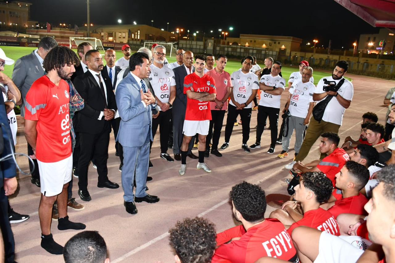 فيما تقدم الاستاذ جمال علام، رئيس الاتحاد المصري لكرك القدم، بالشكر لوزير الشباب والرياضة على الاهتمام بالمنتخب الاولمبي، مؤكدا على ان وزير الشباب والرياضة مؤكدا في كل لقاءاته على الحرص والتفاني في العمل من اجل المنافسة على ميدالية أولمبية.