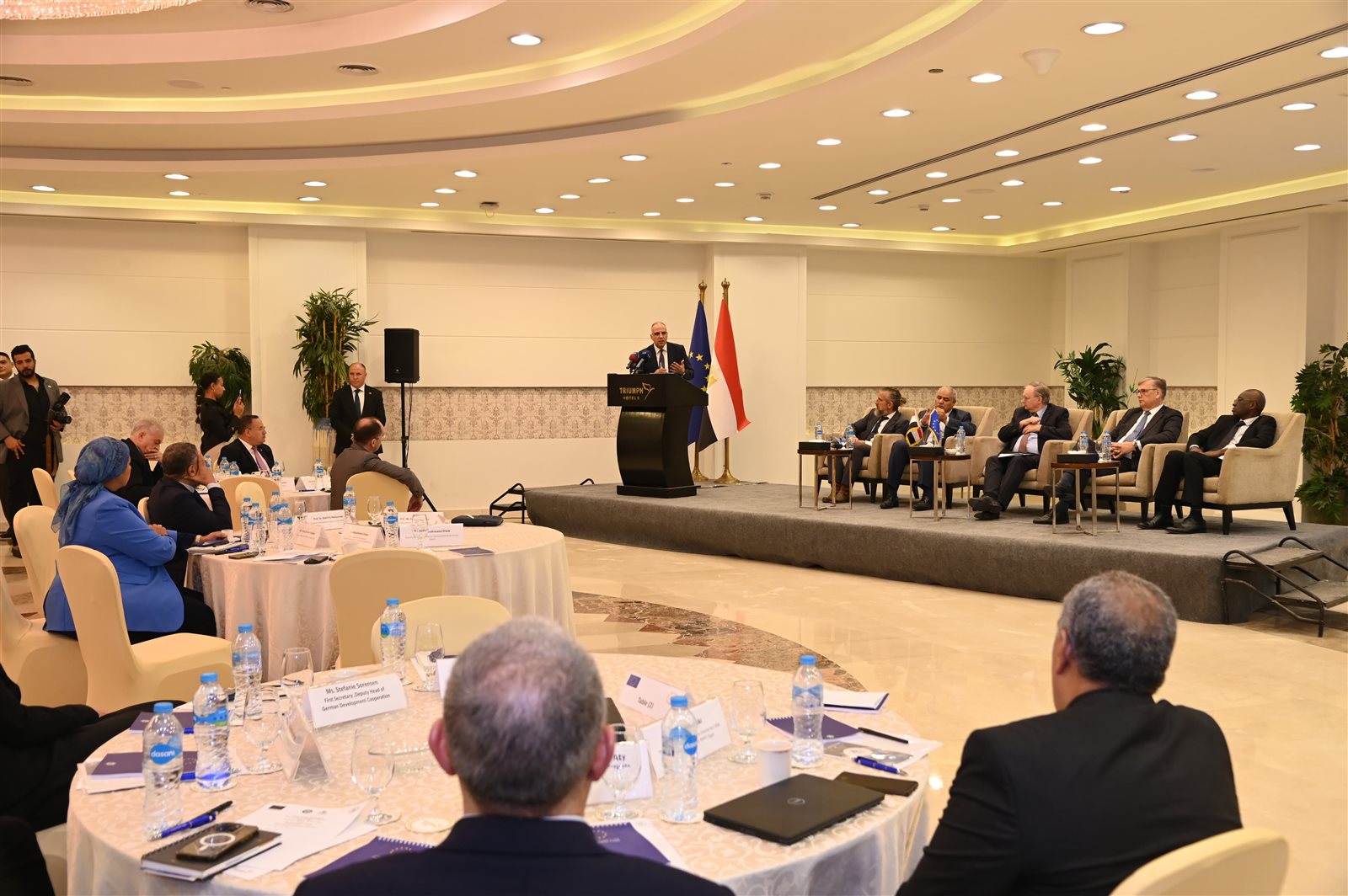 واشار سيادته لأهمية إسبوع القاهرة الخامس للمياه الذى عقد فى شهر اكتوبر 2022والذى كان بمثابة حدث تحضيري لمؤتمر المناخ COP27 ، وما نتج عن هذا المؤتمر الهام من مكاسب ضخمة أهمها رفع مكانة المياه وعلاقتها بالمناخ على المستوى العالمى و وضع كلمة المياه لخمس مرات فى القرار الجامع للمؤتمر ، كما كان اسبوع القاهرة الخامس للمياه أيضا حدث تحضيرى هام لإعداد رؤية موحدة للدول لعرضها خلال فعاليات "مؤتمر الأمم المتحدة للمياه" والذى عقد فى شهر مارس 2024وقادت فيه مصر واليابان "الحوار التفاعلي الثالث للمياه" ، هذه القيادة التى أشارت لمكانة مصر الإقليمية البارزة كصوت يعبر عن القارة الإفريقية والدول العربية ودول البحر المتوسط ، كما واصلت مصر قيادة هذا الحوار التفاعلي خلال فعاليات المنتدى العالمي العاشر للمياه والذى عقد فى بالى فى شهر مايو 2024 .