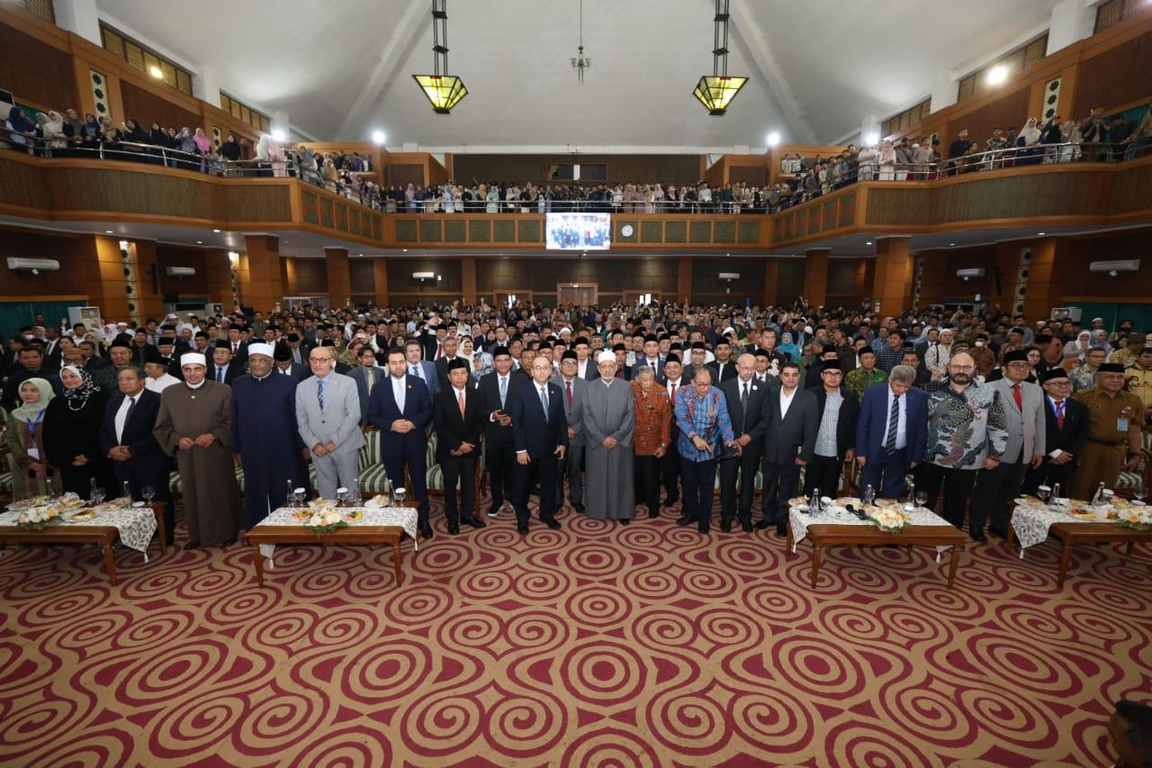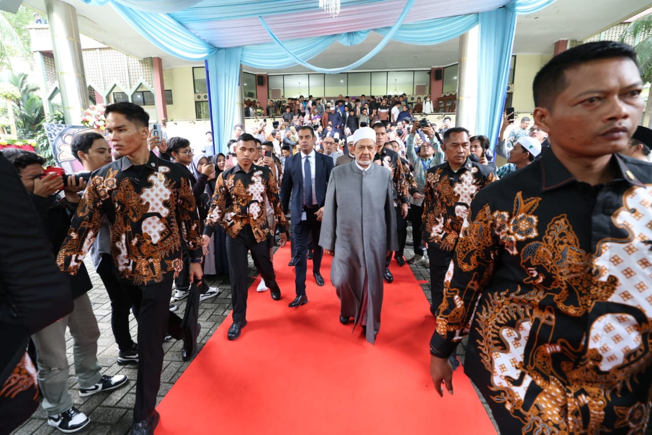عقدت جامعة شريف هداية الله الإسلامية الحكومية بجاكرتا، لقاءً جماهيريًّا لفضيلة الإمام الأكبر الدكتور أحمد الطيب، شيخ الأزهر الشريف، رئيس مجلس حكماء المسلمين، اليوم الثلاثاء، بمناسبة زيارة فضيلته لإندونيسيا، وذلك بحضور أساتذة الجامعة وباحثيها والطلاب الإندونيسيين من مختلف الجامعات، وعدد من الوزراء والسفراء ورؤساء المؤسسات الدينية، وذلك تحت رعاية السيد جوكو ودودو، رئيس جمهورية إندونيسيا.