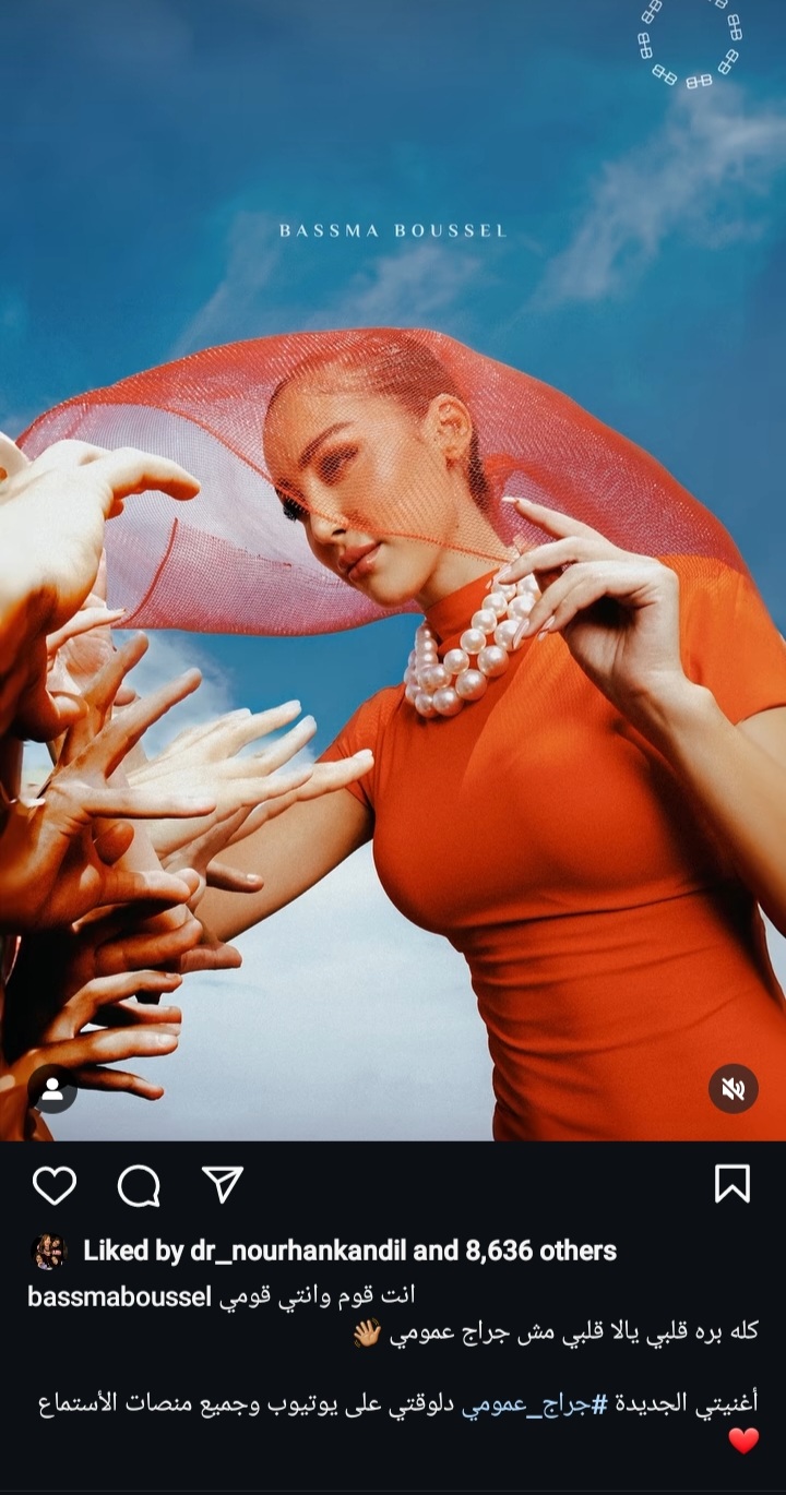طرحت النجمة بسمة بوسيل، أحدث أغنياتها التي تحمل اسم " جراج عمومي " ونشرت بسمة عبر حسابها الرسمي بإنستجرام جزء من أغنيتها وعلقت علية " أغنيتي الجديدة جراج عمومي دلوقتي يوتيوب وجميع منصات الاستماع "