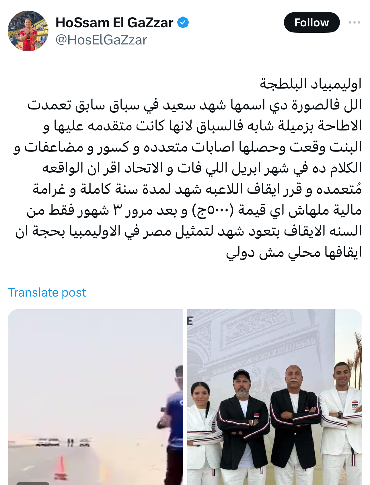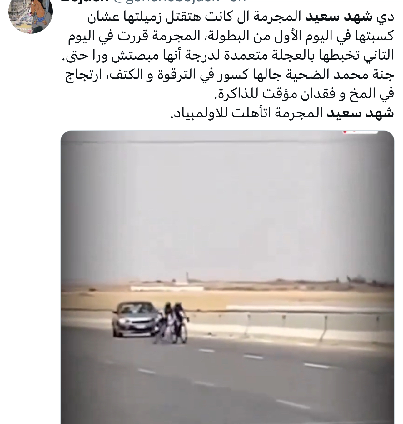 تسبب ظهور شهد سعيد، لاعبة منتخب مصر للدراجات في الصور الرسمية للبعثة المصرية المشاركة في أولمبياد باريس 2024 ، صاحبة واقعة سحل زميلتها جنة عليوة وإصابتها بشكل خطير ، فى حالة غضب لرفض تمثيلها لمصر ومشاركتها فى البعثة الرسمية.