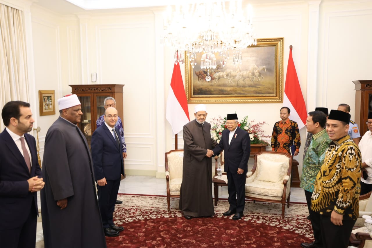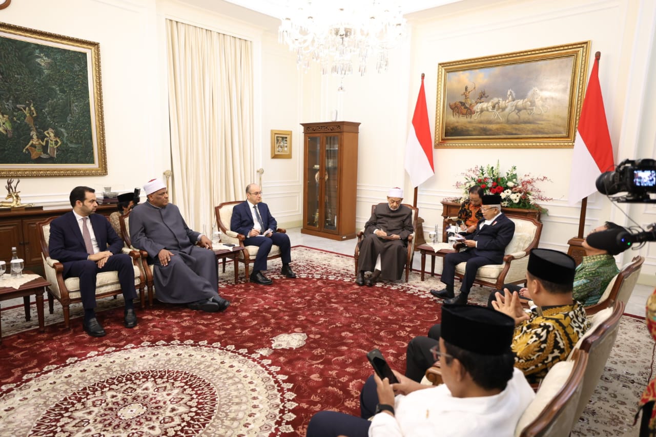 استقبل الدكتور معروف أمين، نائب رئيس جمهورية إندونيسيا، فضيلة الإمام الأكبر أ.د أحمد الطيب، شيخ الأزهر الشريف، رئيس مجلس حكماء المسلمين، بمقر الرئاسة الإندونيسية، لمناقشة سبل تعزيز التعاون المشترك.