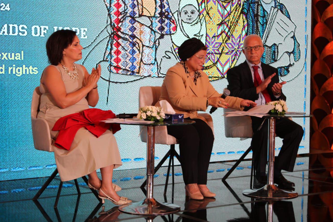 وأشارت إلى أن الدولة أطلقت مبادرة رئيس الجمهورية الألف يوم الذهبية لتنمية الأسرة المصرية والتي ابتكرت منظورا حقوقيا للرسالة السكانية للبعد عن الفجوات المجتمعية ورفض رجل الشارع والتعدي على الحقوق الإنجابية وتهدف المبادرة إلى تمكين الأسرة اقتصاديا وثقافيا والمراة في القلب منها من أجل تطوير قدراتها على ممارسة حقوقها الإنجابية وعلى الاختيار المبني على الدليل لعدد الأطفال، ووقت الإنجاب، حيث من منظور حقوقي حيث تم ربط الحقوق الإنجابية للوالدين بالحفاظ على حق كل طفل في الرعاية المثلى، طيلة السنتين الأولتين من العمر، وحقه في استعداد الأم، صحيا وطبيا ونفسيا، لرعايته لمدة سنة على الأقل، مما يحتم المباعدة الحقوقية بين الحمل المتعاقب من 3-5 سنوات، مؤكدة أن هذا المنظور الحقوقي لملف السكان، سيحقق نقلة نوعية للملف من خلال تخفيض عدد المواليد ووفيات الرضع، إضافة إلى تحسين الخصائص السكانية بدءا بدعم صحة المرأة والنشأة المثلى للأطفال طيلة الألف يوم ورفع الوعي السكاني، بدءا بمشورة ما قبل الزواج، وطيلة الطفولة المبكرة، مما يحقق توازنا بين معدل النمو السكاني والاقتصادي.