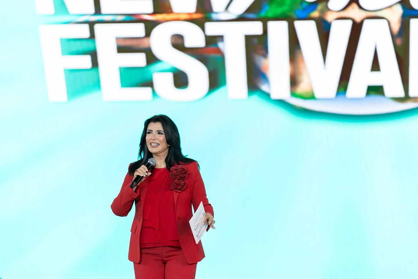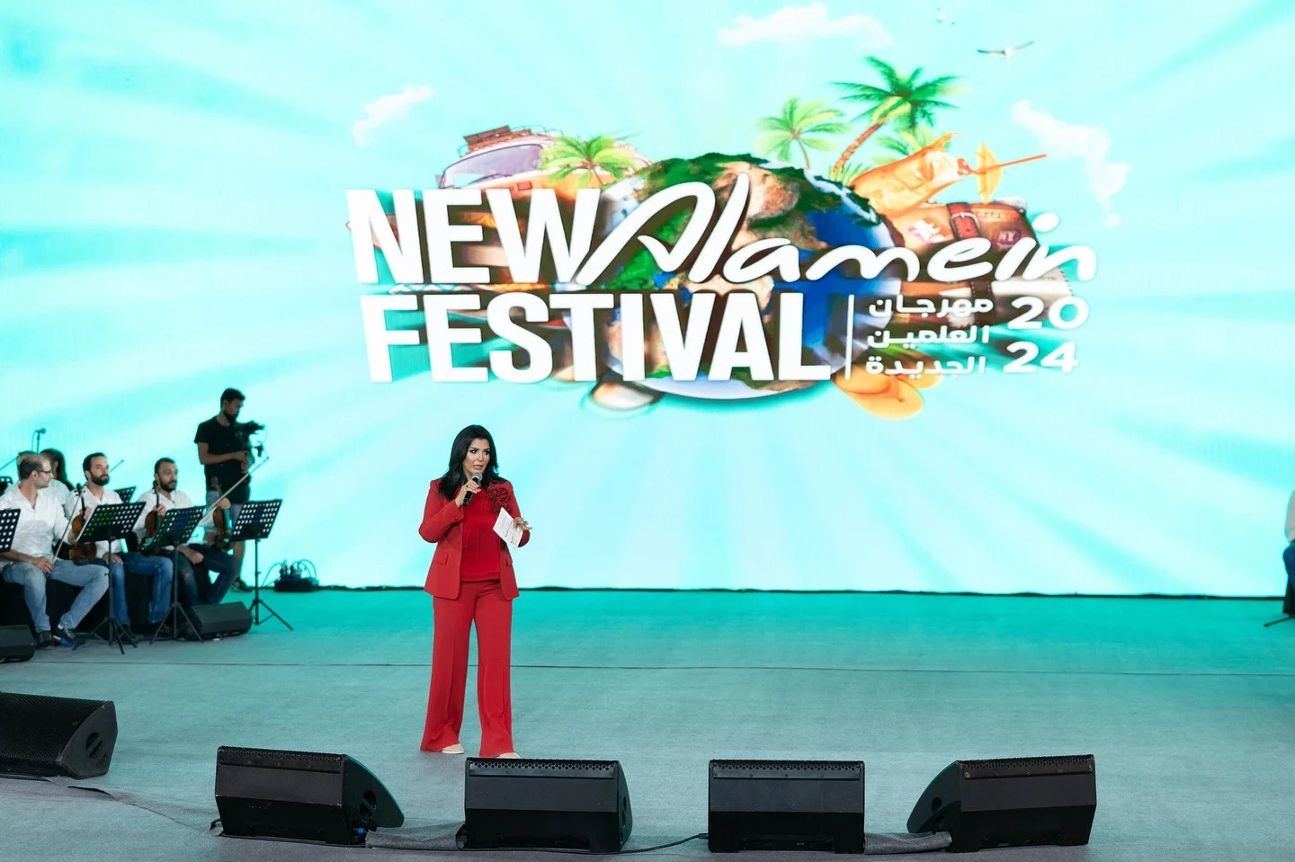 ونشرت صفحة مهرجان العلمين عبر موقع التواصل الاجتماعي "الفيسبوك" صورًا لمنى الشاذلي وهى تقدم البرنامج وسط حضور كبير من المواطنين.