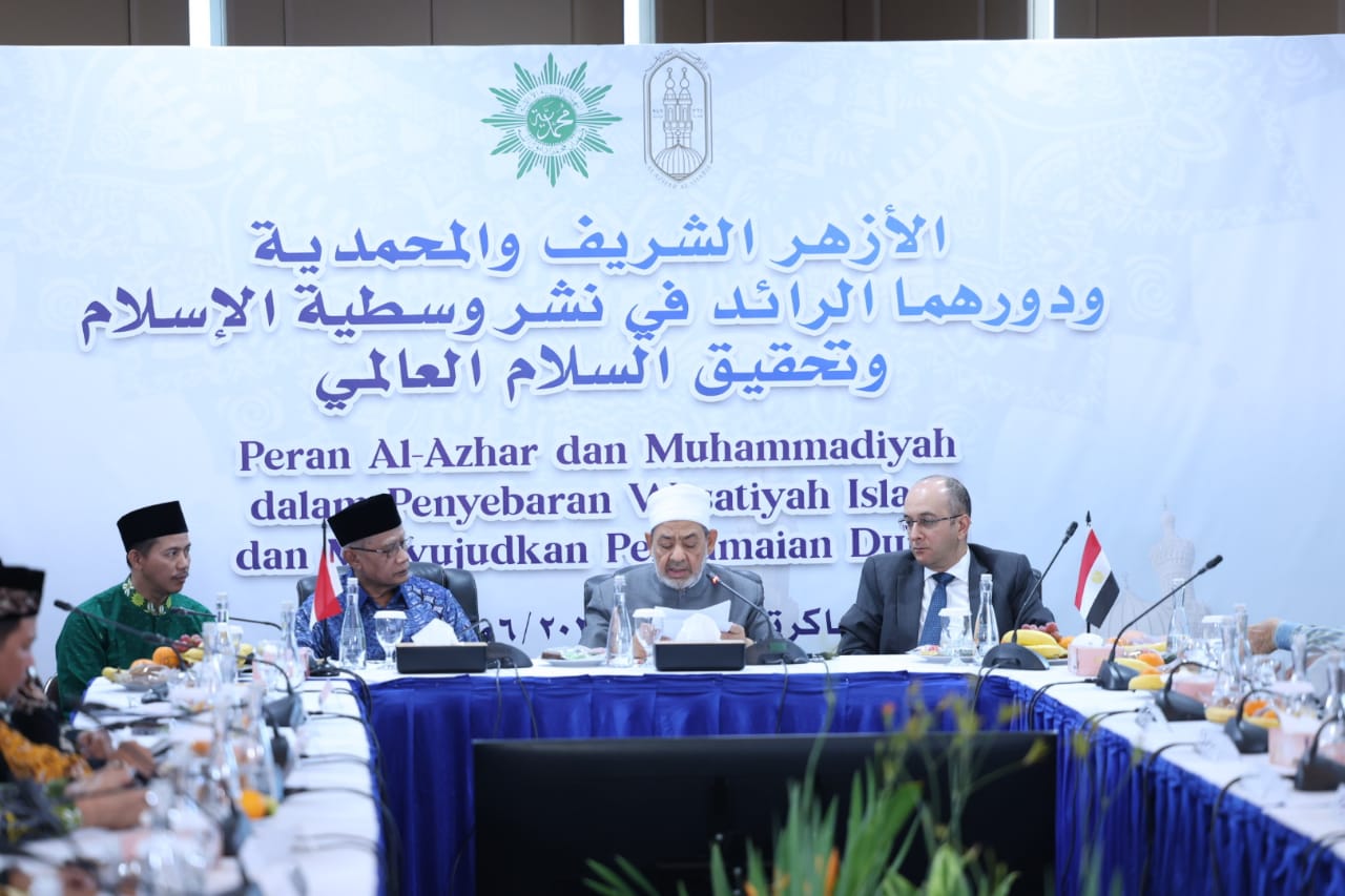 عقدت الجمعية المحمدية الأندونيسية بجاكارتا، حفل استقبال خاص لفضيلة الإمام الأكبر أ. د. أحمد الطيب، شيخ الأزهر الشريف، رئيس مجلس حكماء المسلمين؛ بمناسبة زيارة فضيلته لإندونيسيا للمرة الثالثة، تحت عنوان "الأزهر الشريف والمحمدية ودورهما الرائد في نشر وسطيَّة الإسلام وتحقيق السلام العالمي"، وذلك بحضور فضيلة الشيخ حيدر ناصر، الرئيس العام للجمعية المحمدية، وقيادات المؤسسة، ورؤساء الجامعات المحمدية، ونخبة من علماء إندونيسيا ومفكريها.