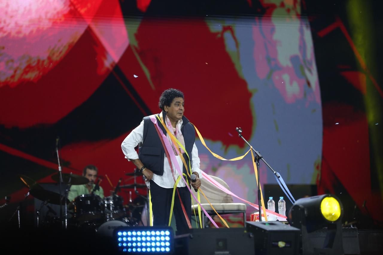 شهدت أولى الحفلات الفنية بمهرجان العلمين في دورته الثانية، تقديم رسالة حب وتضامن مع فلسطين بصوت الكينج محمد منير، على مسرح U ARENA، الذي زينه علم فلسطين قبل صعود الكينج.