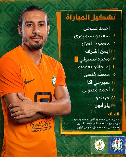 التشكيل الرسمي لمباراة سموحة امام البنك الأهلي في الدوري