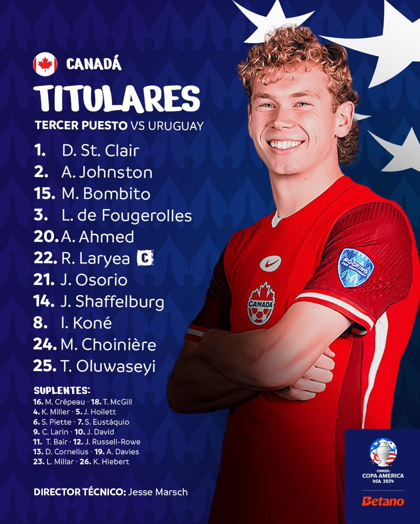 فيما جاء تشكيل كندا ضد أوروجواي كالتالي: