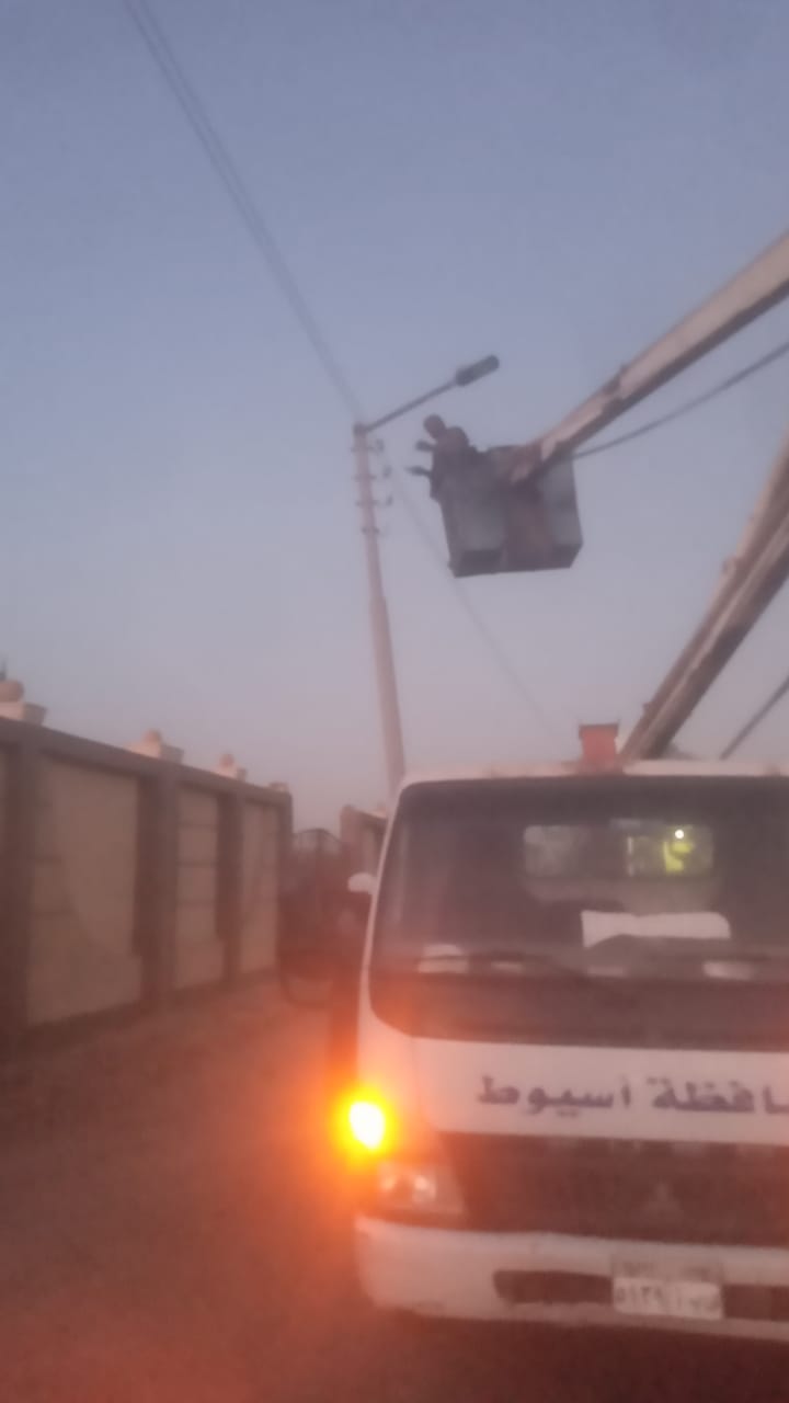 وفي هذا الإطار قامت الوحدة المحلية لمركز أسيوط برئاسة العميد عبدالرحمن عامر رئيس مركز أسيوط بصيانة وتبديل الكشافات المعطلة وتركيب لمبات وكشافات أخرى تعمل واستكمال أعمال صيانة الأعمدة والأسلاك الكهربائية المتهالكة حيث تم استبدال وتركيب الكشافات الجديدة بنطاق الوحدة المحلية لقريتي اسكندرية التحرير ونجع سبع والطرق المؤدية إليهما فضلاً عن المتابعة الدورية لرصد الأعطال بصفة مستمرة لصيانة أعمدة الإنارة العامة بكافة الطرق والشوارع لتقديم خدمه آمنه للمواطنين مع مراعاة تخفيف الأحمال وترشيد استهلاك الكهرباء .