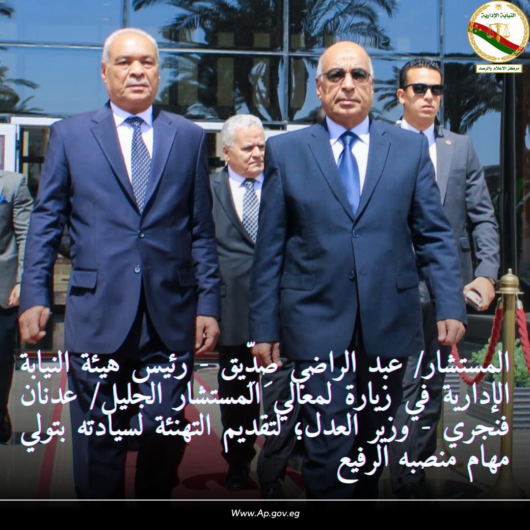 قام المستشار عبد الراضي صِدِّيق - رئيس هيئة النيابة الإدارية، بزيارة المستشار عدنان فنجري - وزير العدل، وذلك صباح اليوم الأحد الموافق 14 / 7 / 2024 ، بمقر وزارة العدل بالعاصمة الإدارية؛ وذلك لتقديم التهنئة لسيادته بمناسبة توليه مهام منصبه الرفيع وزيراً للعدل.