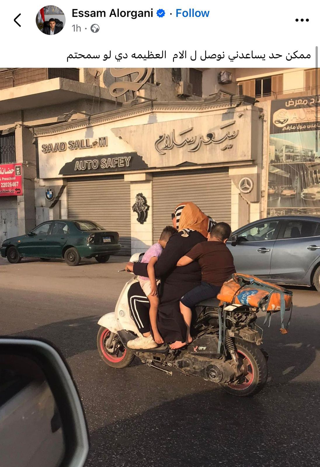 وتصدرت صورة السيدة مواقع التواصل الاجتماعى بعد أن التقطها أحد الأشخاص وهى تعمل على موتوسيكل ومعاها أطفالها.