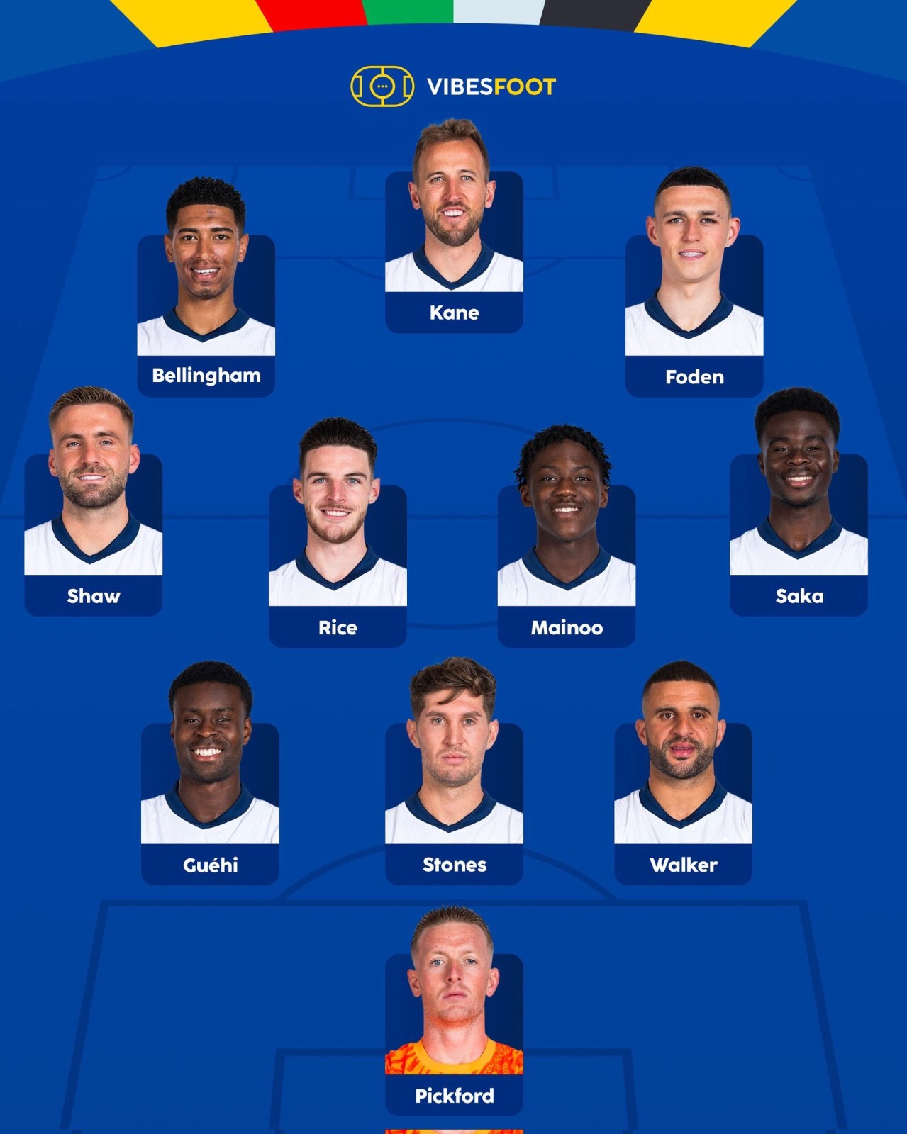 أعلن جاريث ساوثجيت قاتد كتيبة الإنجليز، التشكيل الرسمي للأسود الثلاثة في قمة أوروبا أمام الماتادور الإسباني، في نهائي كأس الأمم الأوروبية يورو 2024، والذي سيقام على الملعب الأولمبي بالعاصمة الألمانية برلين.
