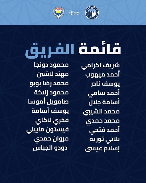 قائمة بيراميدز لمواجهة النصر في كأس مصر