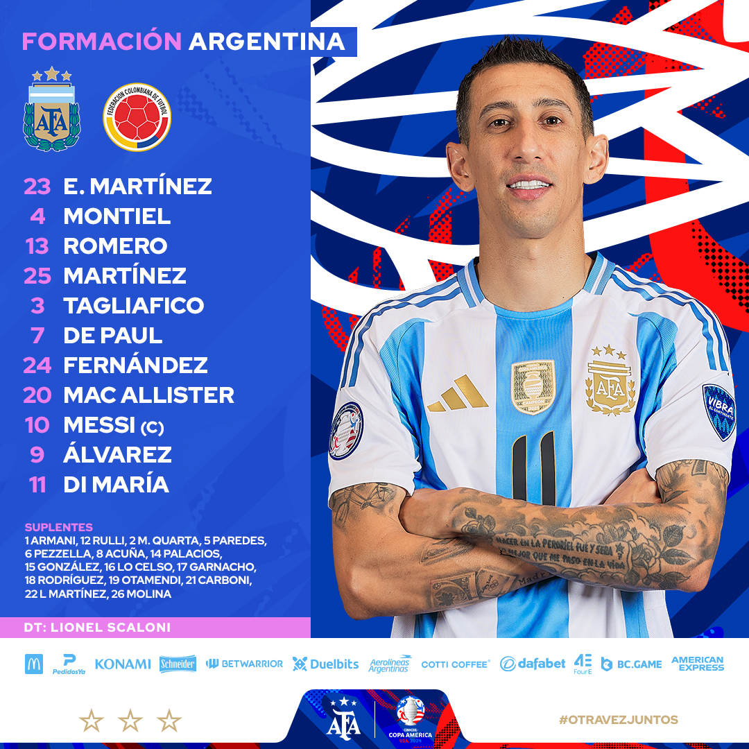 خط الهجوم: ليونيل ميسي - جوليان ألفاريز - أنخيل دي ماريا.