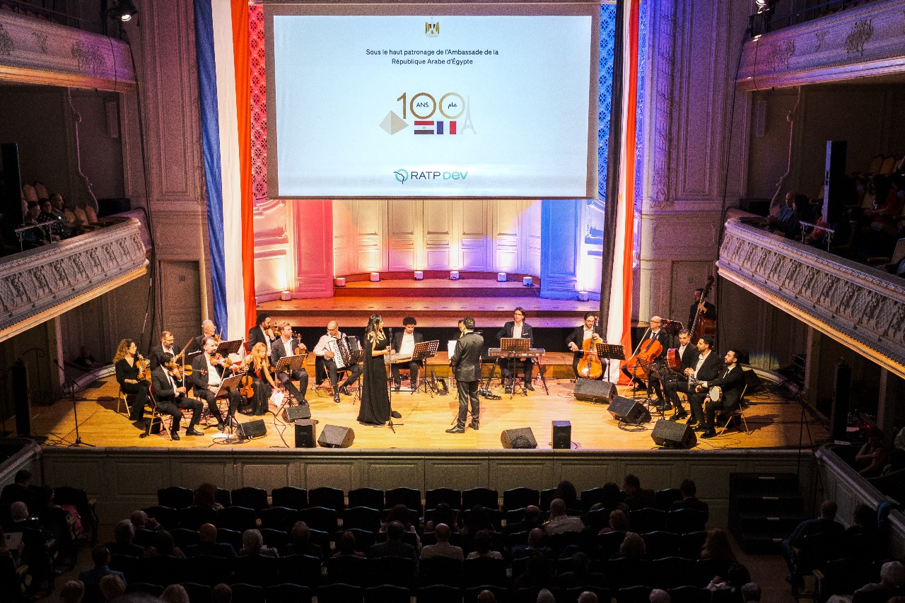 حالة من النوستالجيا والإنسجام مع الموسيقي عاشها مايقرب من 1000 شخص في الإحتفالية التي أقامتها السفارة المصرية بفرنسا، للإحتفال باليوم الوطني لمصر وبالذكرى المئوية للعلاقات الدبلوماسية بين مصر وفرنسا من خلال تقديم "أم كلثوم" احتفالا بمرور 100 عام على بدايتها الفنية، وأقيم الاحتفال على مسرح "جافوه - La salle Gaveau" لتاريخه الفني والثقافي بمشاركة النجمات مروة ناجي وريهام عبدالحكيم، وظهور خاص للسوبرانو العالمية أميرة سليم، وبحضور المسئولين الحكوميين ونواب من البرلمان الفرنسي، وممثلو كبرى الشركات ومجتمع الأعمال ووسائل الإعلام، والشخصيات العامة الفرنسية، فضلا عن السفراء الأجانب المعتمدين لدى فرنسا أو لدى المنظمات الدولية في باريس، وعدد كبير من أبناء الجالية المصرية ونظمته مؤسسة مرآة للثقافة والفنون.