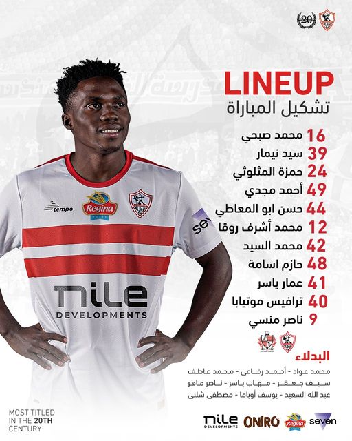 ويغيب نجم الفريق الأول أحمد سيد زيزو عن قائمة الفريق للمباراة الثانية على التوالي، بسبب إرتبياطة بالمشاركة مع المنتخب الأولمبي في دورة الألعاب الأولمبية "باريس 2024"، والتي تقام في فرنسا.